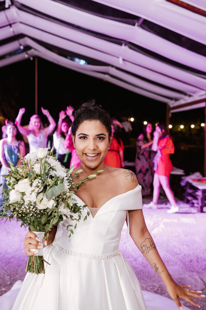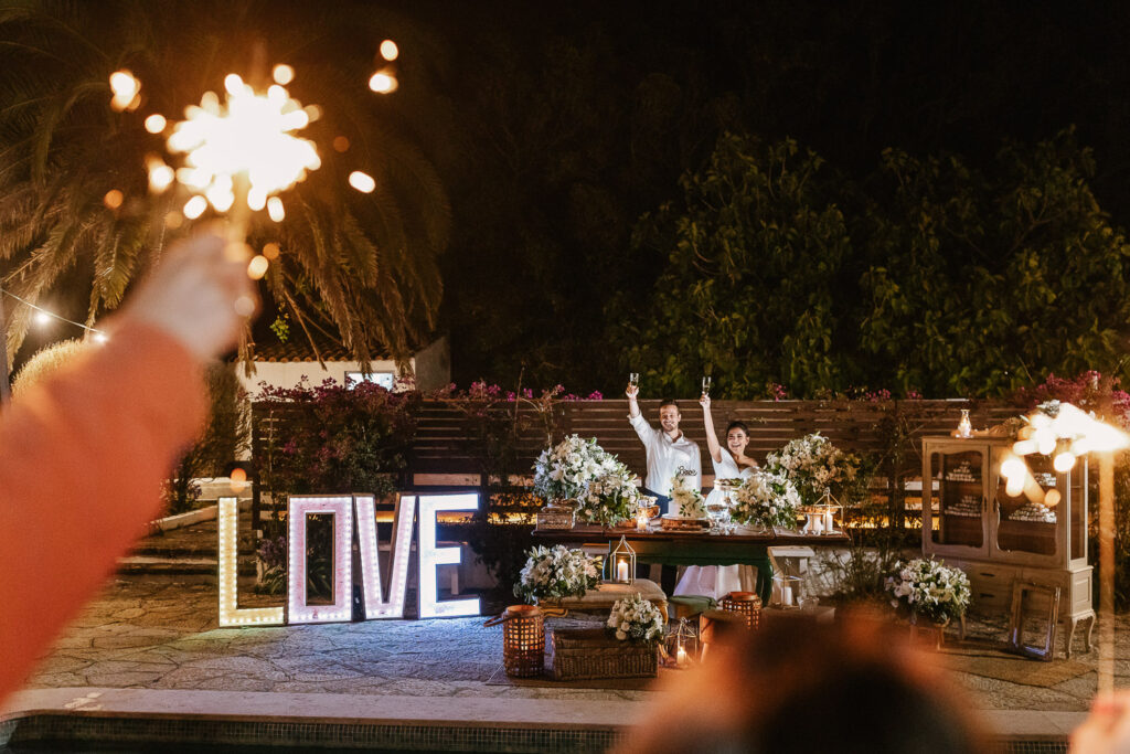 O ponto ápice do casamento foi sem sombra de dúvidas o momento da celebração, a Lais do Casar Fora da Caixa realizou juntamente com os votos dos noivos uma cerimônia leve e com momentos de muitas risadas entre os noivos e os convidados.