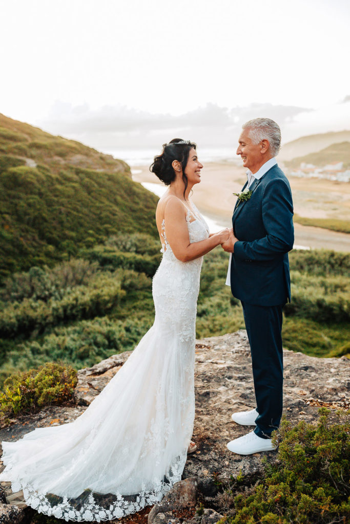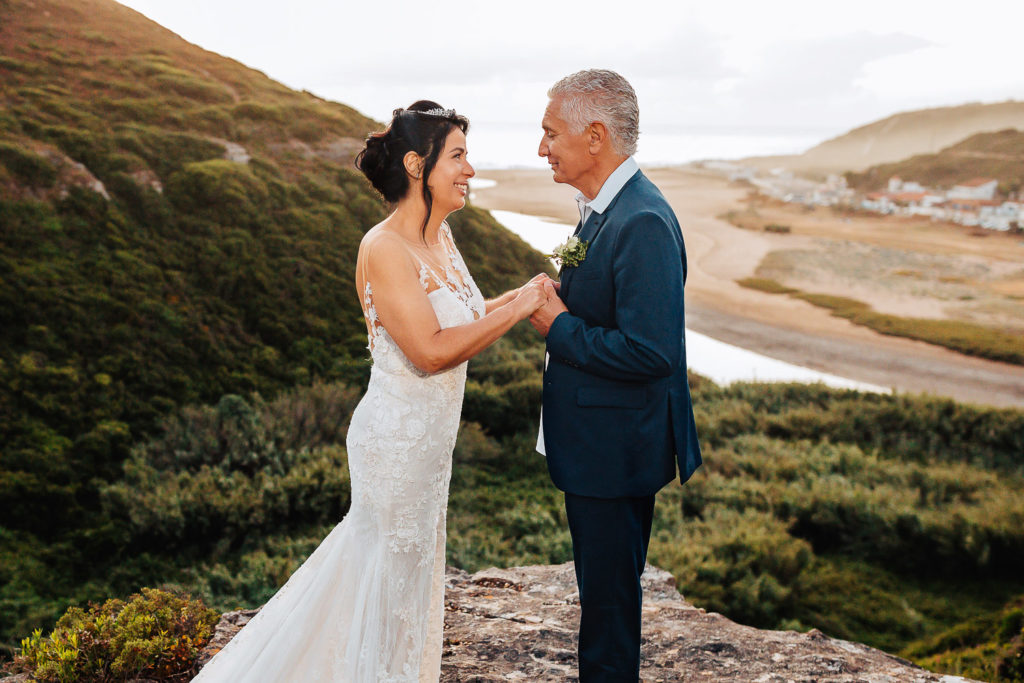 A história de amor da Cristina e do Vitor é muito interessante, suas respectivas filhas dos relacionamentos anteriores, estudavam na mesma escola e perceberam que seria muito bom apresentar os dois um ao outro, e ao final, a tarefa das duas de serem cúpidos desse amor, deu certo e hoje, depois de quase 5 anos juntos, resolveram oficializar o casamento civil pela manhã, no dia 12 de junho, dia dos namorados no Brasil e véspera de Santo Antônio, e a tarde a Cristina aproveitou para fazer uma surpresa ao Vitor com um Elopement em Ericeira. Sim, o noivo só soube no dia que faria um casamento a dois.