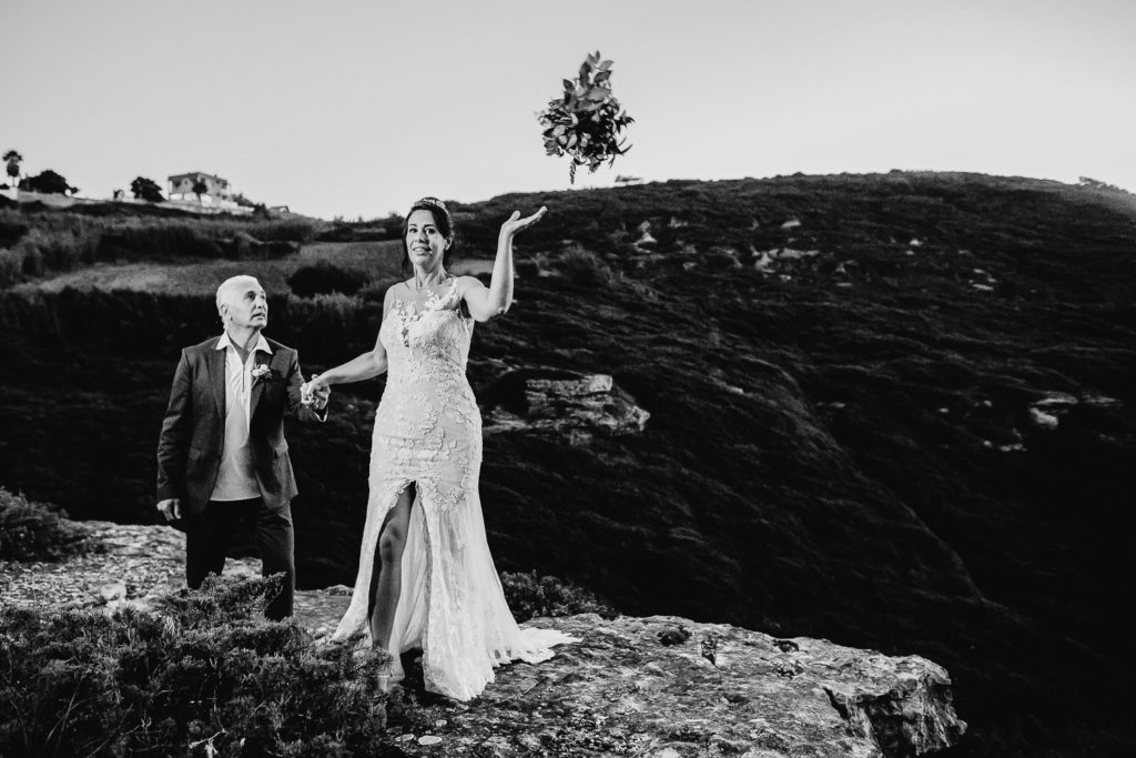 Logo em seguida descemos em direção ao penhasco, para a tão esperada troca de votos e o brinde, e o céu não poderia está mais bonito para testemunhar o amor entre os dois e simbolizar esse momento, a noiva jogou o buquê ao ar, em agradecimento por esse dia muito especial.