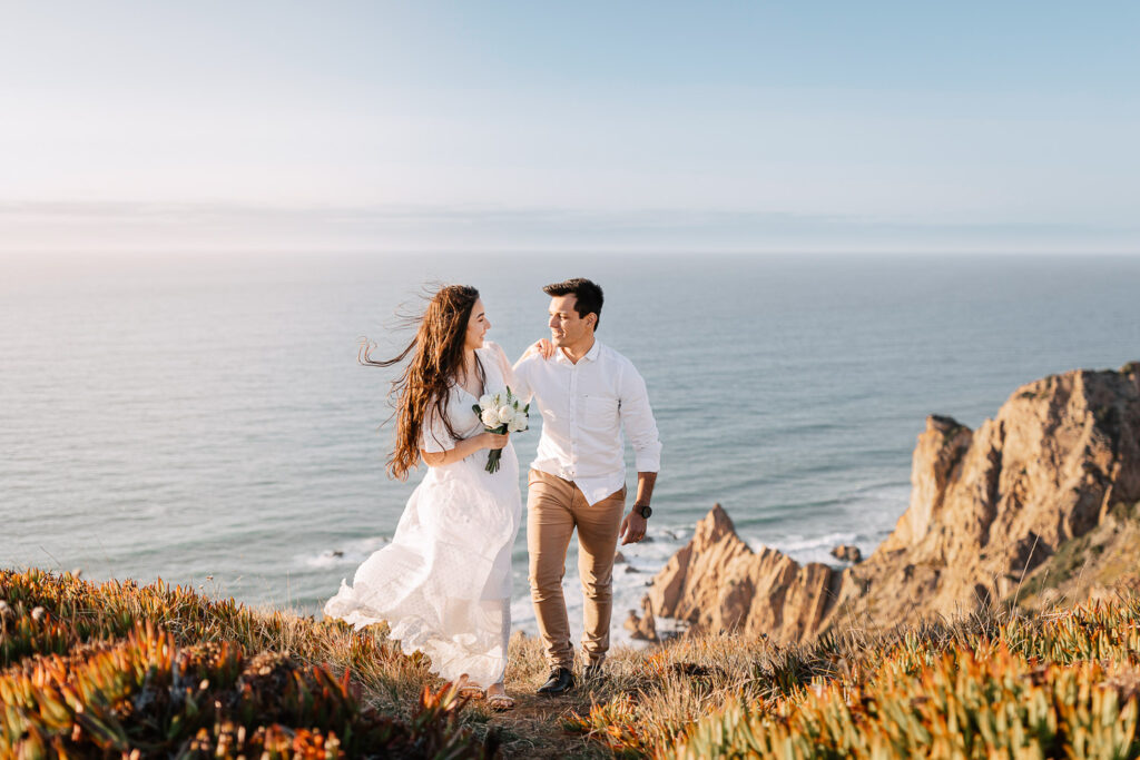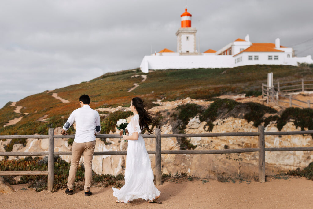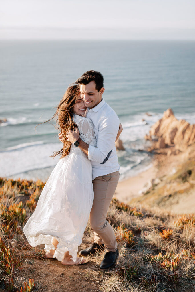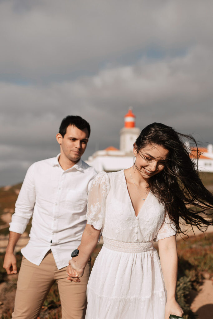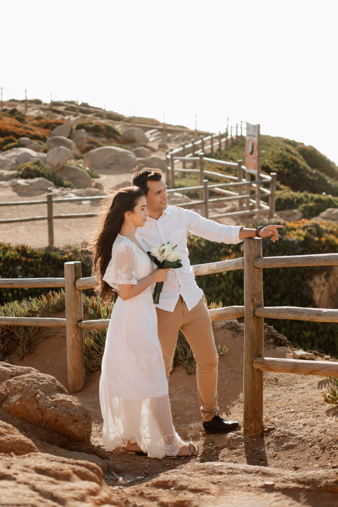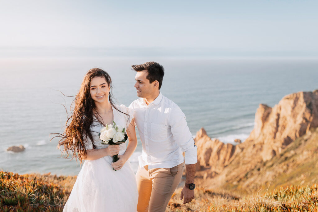 A noiva Gabriela nos encontrou na internet e entrou em contato dias antes do casamento para fazer um Elopement no Cabo da Roca. Na realidade, quando nos procurou a intenção era fazer um pequeno ensaio, mas ao conversarmos um pouco mais e saber o motivo, explicamos que o Elopement é o que eles estavam a procura, só não sabiam que era esse o nome, já que a intenção era algo que marcasse o dia deles, mas sem precisar de convidados e ter apenas a bíblia e a natureza como testemunha do amor, já que dias depois, fariam algo mais formal e casariam no civil, mas com as novas normas desse ano, restrições de pessoas, uso de mascaras, etc. Não era bem desse jeito que gostariam de lembrar do dia mais especial de suas vidas.