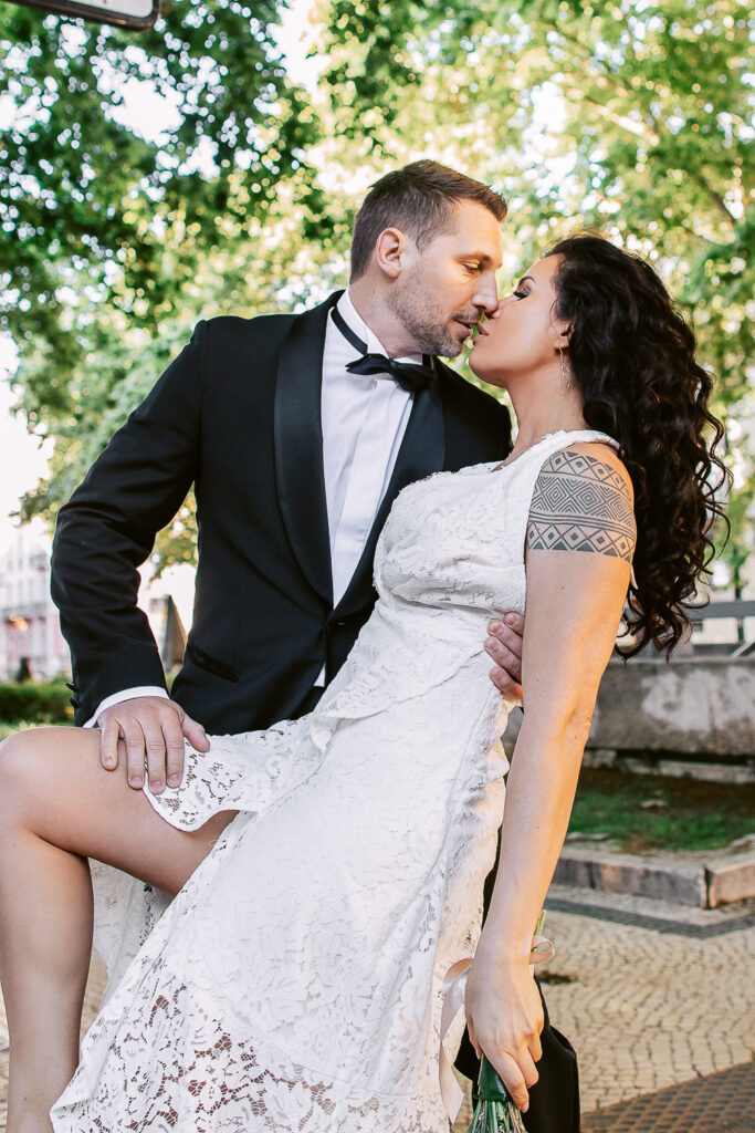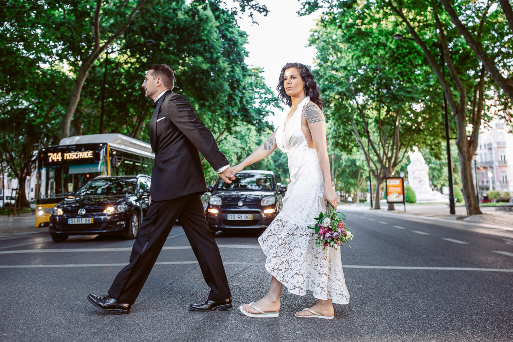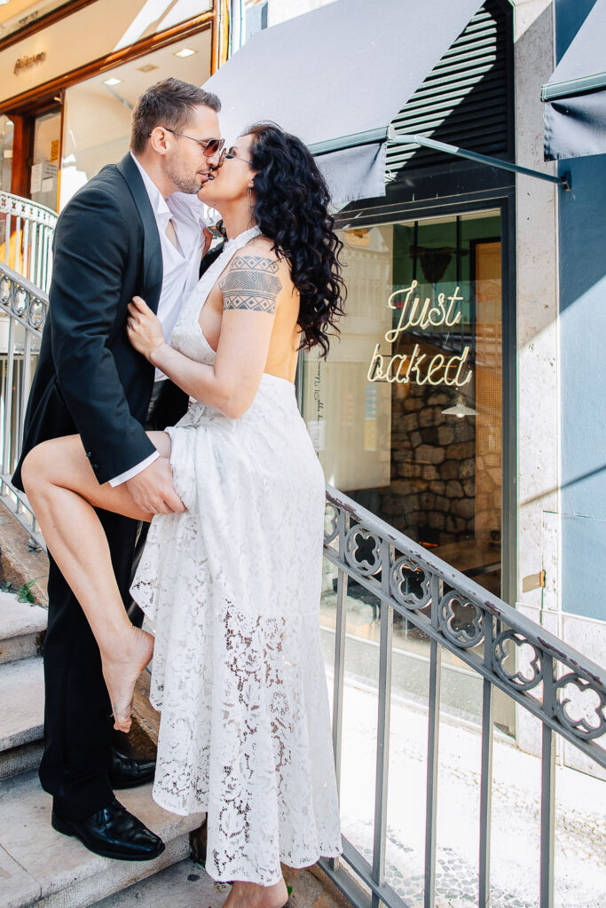 Os dois que já tiveram seus relacionamentos anteriores e fizeram grandes festas e muito glamour, optaram nesse novo relacionamento fazer um Elopement Urbano em Portugal.