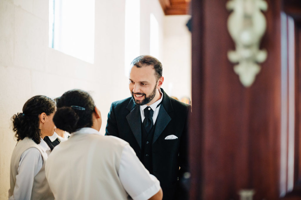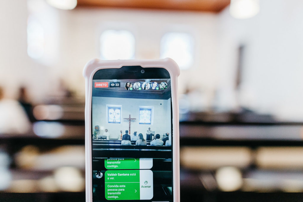 Até o padre, que por sinal, muito humorado, brincava com o poder da tecnologia de aproximar as pessoas e o fato dos noivos conseguirem mostrar o casamento ao vivo para os seus seguidores no instagram.